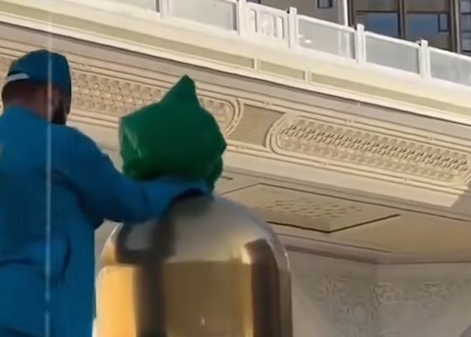 এই চাঞ্চল্যকর দৃশ্যটি প্রত্যক্ষ করার পর সেখানে উপস্থিত সাধারণ মানুষ থেকে শুরু করে নিরাপত্তারক্ষীরা পর্যন্ত বিস্ময়ে হতবাক হয়ে যান। ভিডিওটিতে দেখা যায়, নীল রঙের পোশাক পরা একজন পরিচ্ছন্নতাকর্মী অত্যন্ত সতর্কতার সাথে একটি সবুজ রঙের কাপড় বা ব্যাগ ব্যবহার করে মৌমাছিগুলোকে সেখান থেকে সরিয়ে নেওয়ার চেষ্টা করছেন। তবে এই পুরো প্রক্রিয়ায় মৌমাছিগুলো কোনোভাবেই আক্রমণাত্মক ছিল না, বরং তারা অত্যন্ত শান্তভাবে সেই পবিত্র স্থানটিকে আঁকড়ে ধরে ছিল। ইসলামের পবিত্রতম এই ভূমিতে যেখানে কোনো প্রাণীকে আঘাত করা নিষেধ, সেখানে মৌমাছিদের এমন সরব উপস্থিতি এক বিশেষ তাৎপর্য বহন করছে বলে অনেকে মনে করছেন।